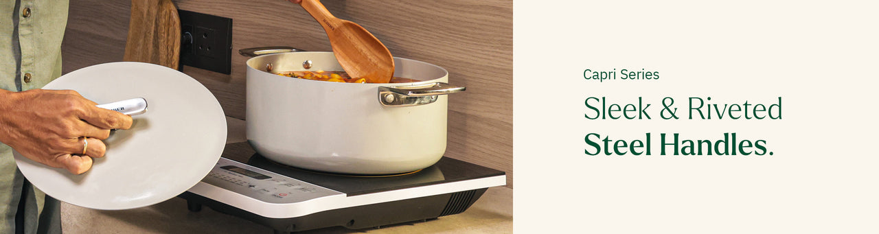 Our all-you-need cookware collection feature beautifully finished stainless steel handles crafted in Italy - and is inspired by the elegance of the famed Italian coastline.