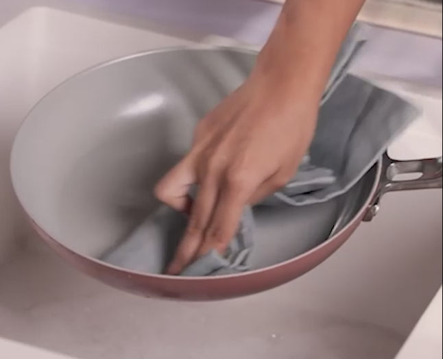 3. After every use, handwash the outer side of the pan also with a gentle soap. Do not use harsh detergents to wash the cookware.