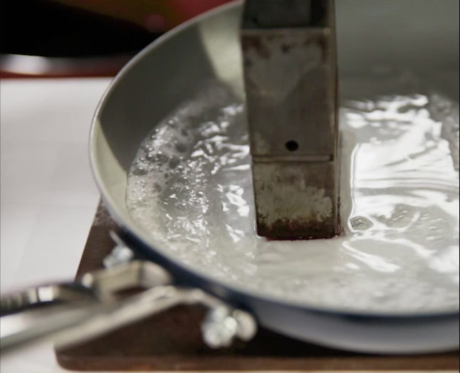 Our non-stick is made from natural ingredients which are all 100% safe to use in contact with all foods. Plus, the absence of potentially dangerous chemicals like PTFE (Teflon®), PFOA, PFAS, Lead, and Cadmium means that there is no chance of harmful materials leaching into your food, even if you accidentally scratch or overheat your pan.