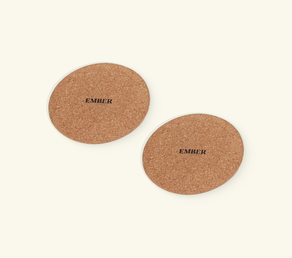 Ember Cork Coasters—natural, minimalist protection for your surfaces