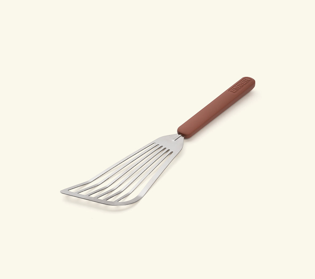 A sturdy, stainless steel spatula for lifting and flipping delicate foods