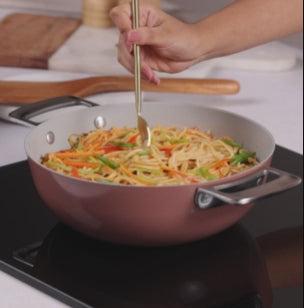Our ceramic surface allows for healthier cooking with less oil and makes cleaning effortless. The glass-like porcelain enamel coating ensures easy maintenance and durability, reducing the need for scrubbing and extending your pan's lifespan.
