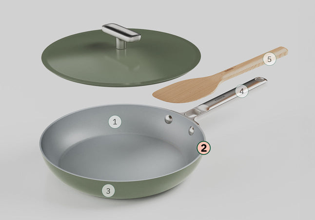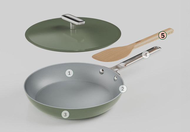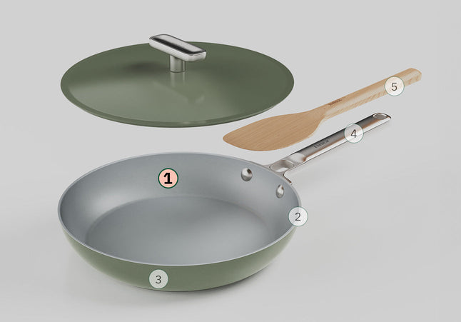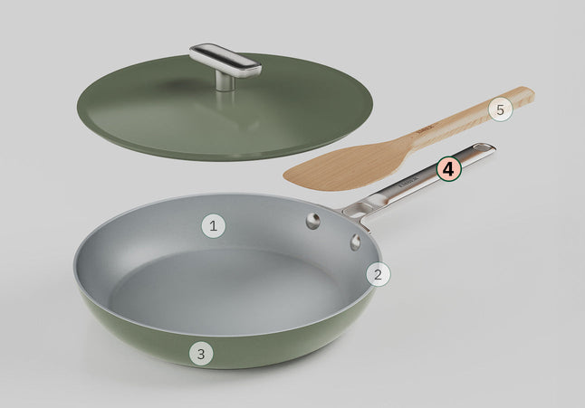 Our non-stick is made from natural ingredients which are all 100% safe to use in contact with all foods. Plus, the absence of potentially dangerous chemicals like PTFE (Teflon®), PFOA, PFA, Lead, and Cadmium means that there is no chance of harmful materials leaching into your food, even if you accidentally scratch or overheat your pan.