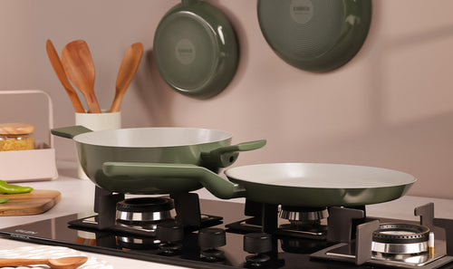 Your kitchen’s dream team. Our Frypan, Kadai and Flat Pan - the perfect trio for effortless, everyday cooking.