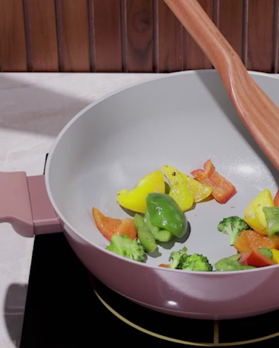 Not fussy, just mindful. Like any premium tool, your Ember pan thrives with gentle utensils (wood or silicone), low-to-medium heat, and a little oil. No harsh scrubbing, no steel wools—just clean joy.
