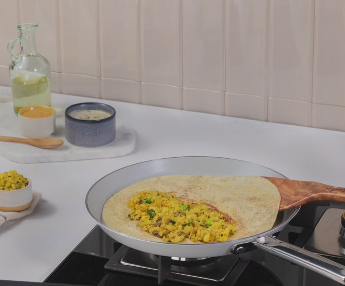 Our Flat Pan, your everyday champion. Perfect for rotis, parathas and pancakes.